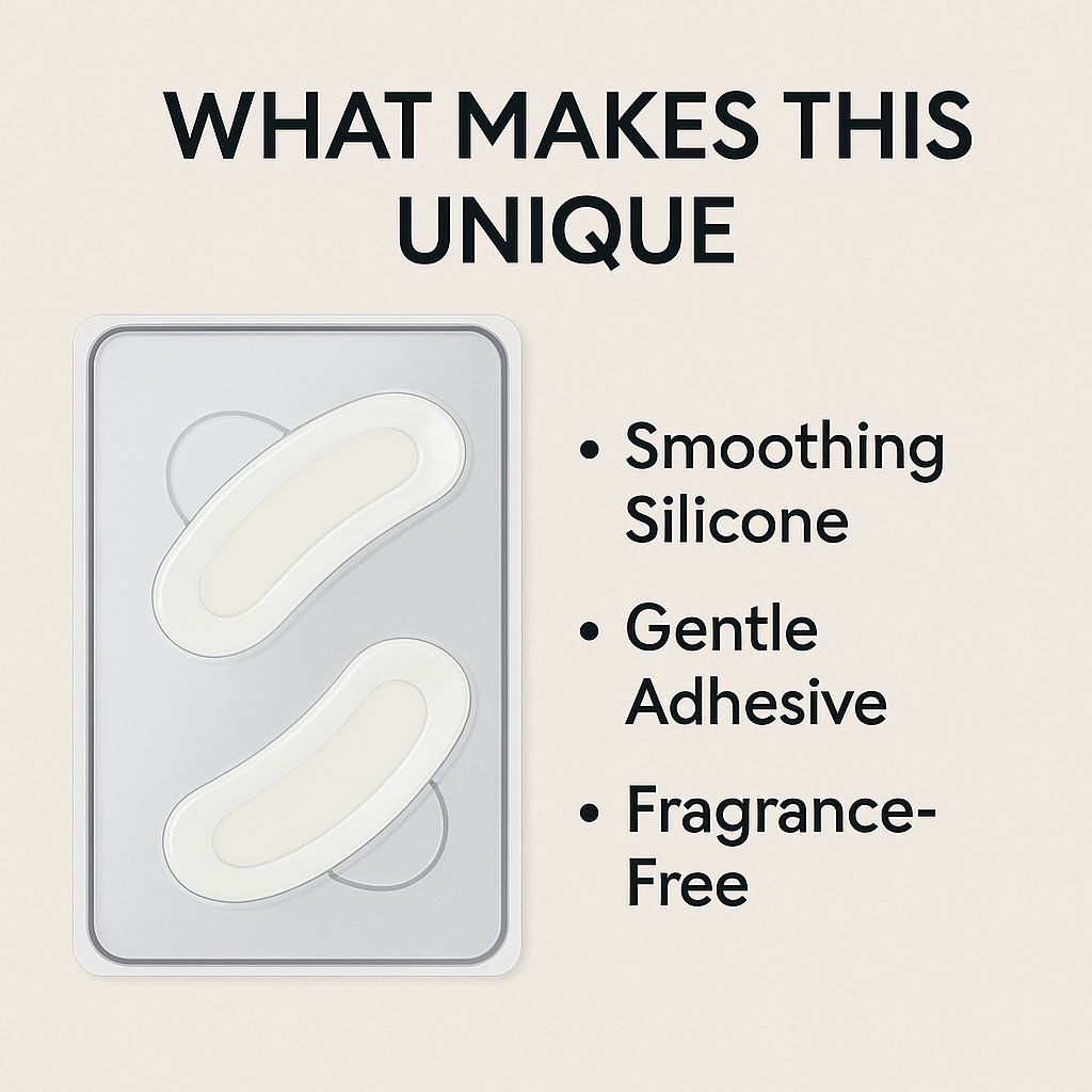 Medical-grade silicone holds skin taut to prevent creasing while boosting hydration and circulation. This smooths lines, reduces puffiness, and brightens dark circles overnight.